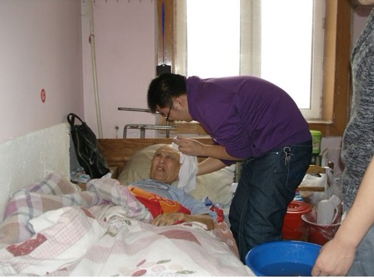 3月4号的中午我们早早的来到了“阳光养老院”,接待我们的工作人员首先为我们介绍了养老院的大体情况。这里的大部分老人都是不能自理,失去生活能力的,我们今天的主要工作就是帮助老人们清理个人卫生和室内卫生。我系团总支书记郝俊宁老师认真分配工作,带领团总支同学们积极的为老人们服务。洗头、洗脸、洗脚、小心翼翼为老人们清理卫生,我们的同学不怕脏,不怕累,真心的投入到工作之中,把我们的爱心奉献给这些老人。参与这次公益活动的还有哈尔滨市红十字会“龙江团”志愿服务队,腾讯微博同城会等组织。